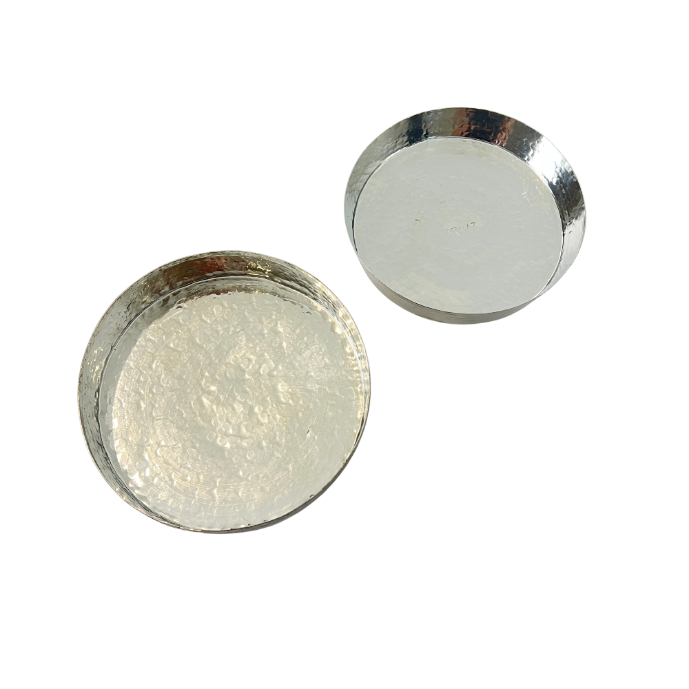 Expertly crafted with a hammered metallic surface, the bowl sits atop a sturdy, tapered pedestal base. Its shallow, wide-rimmed design makes it incredibly versatile—ideal for serving, organizing, or simply acting as a standalone sculptural accent.