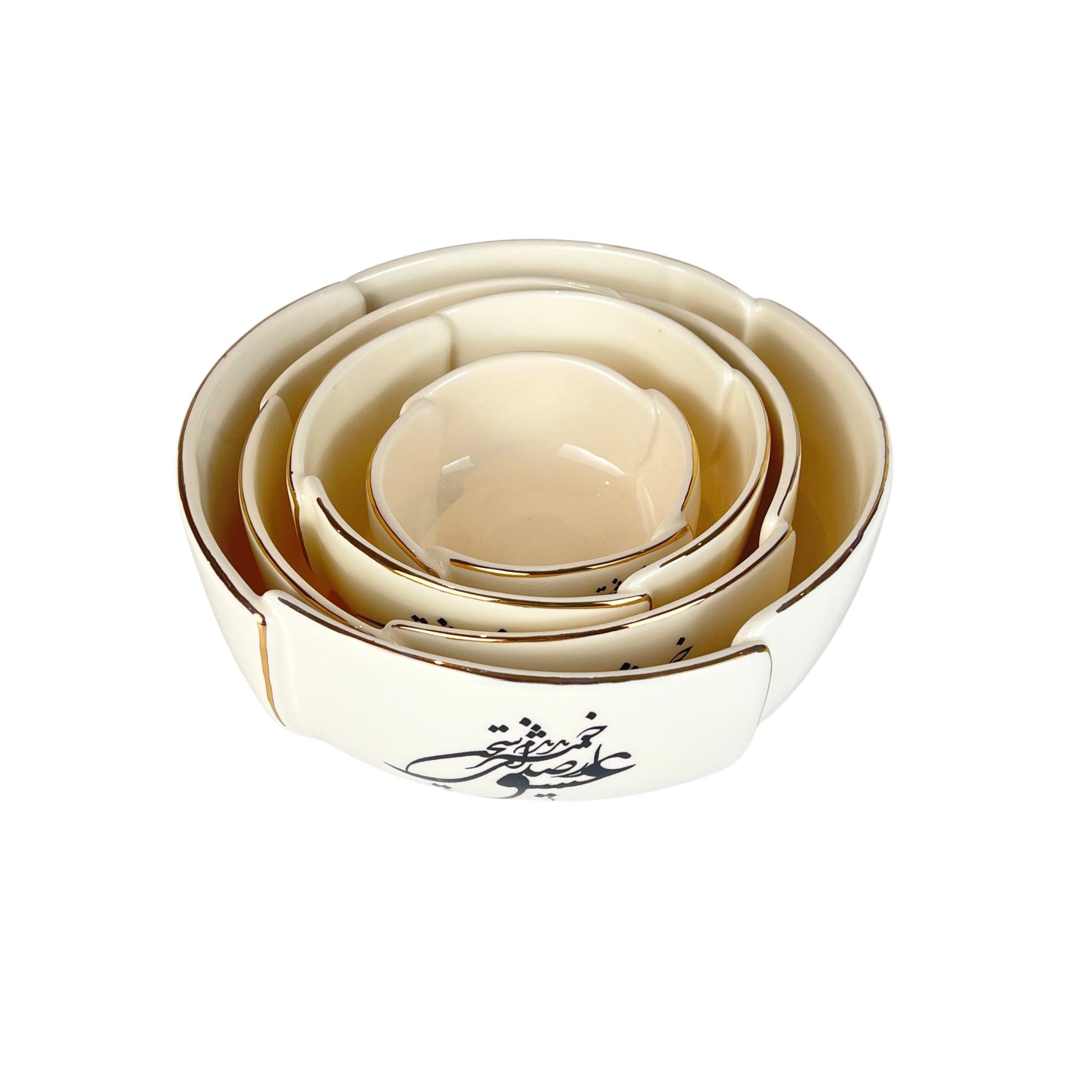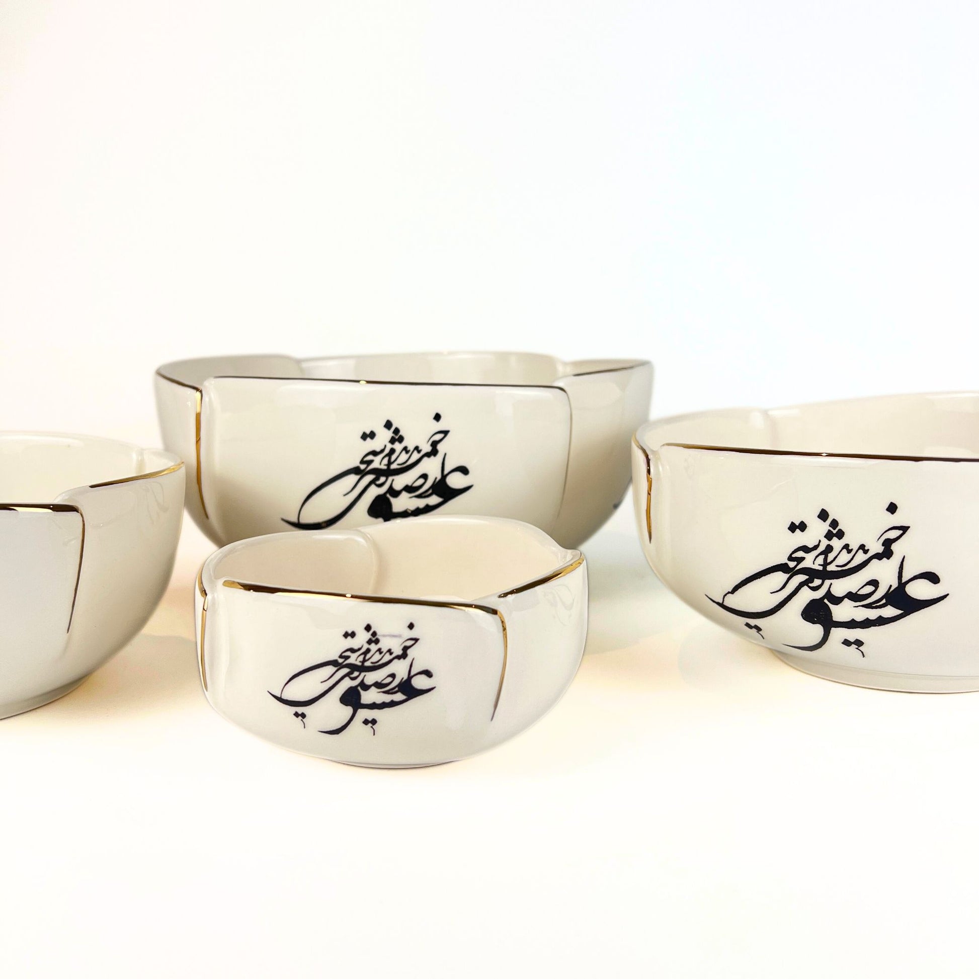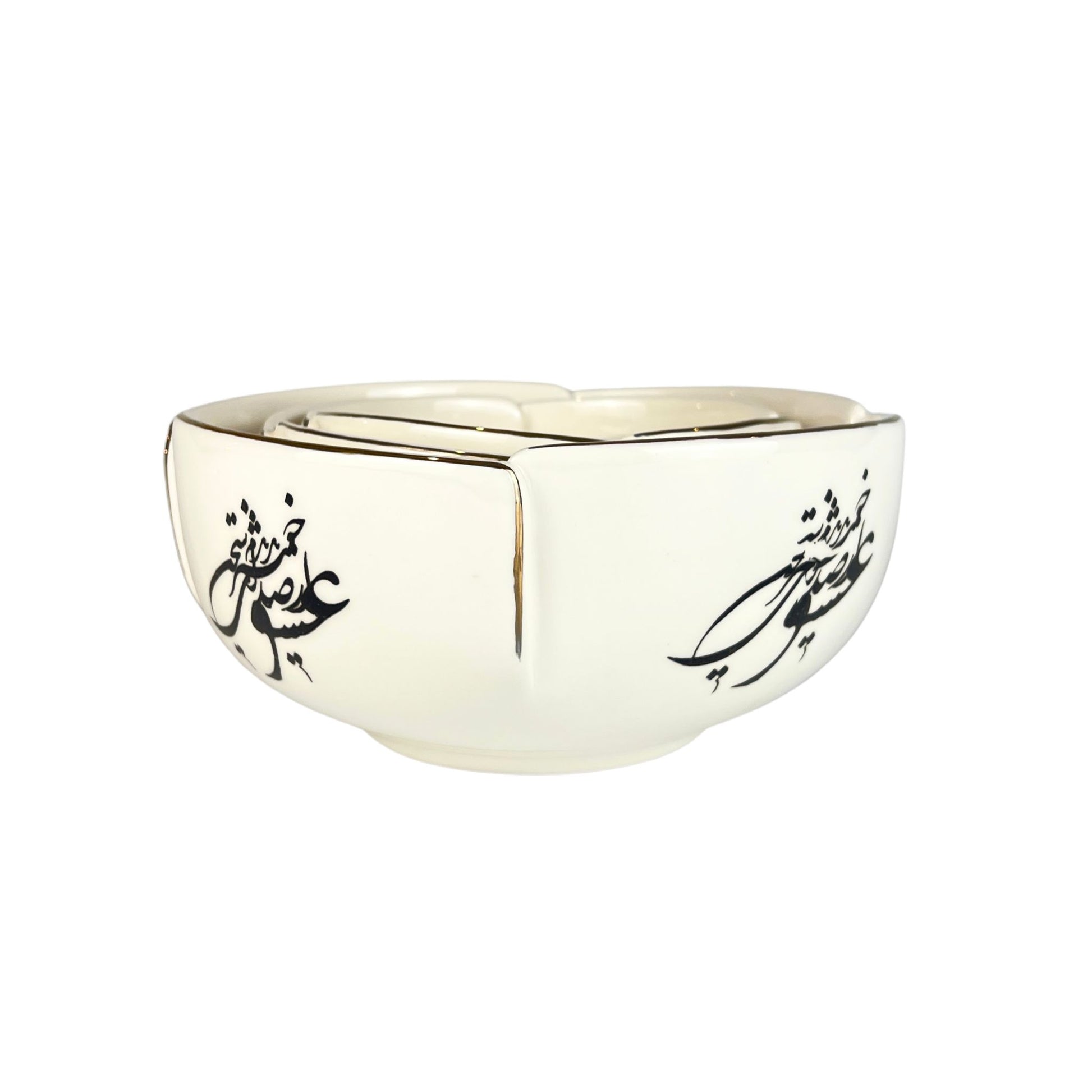A beautifully handcrafted bowl decorated with 11k gold calligraphy, inspired by Persian poetry. Named Sedaye Sokhane Eshgh (صدای سخن عشق), meaning “The Voice of Love’s Words,” this elegant piece carries both cultural meaning and refined beauty. Perfect for serving, styling, or gifting, this piece is a timeless celebration of love and craftsmanship.