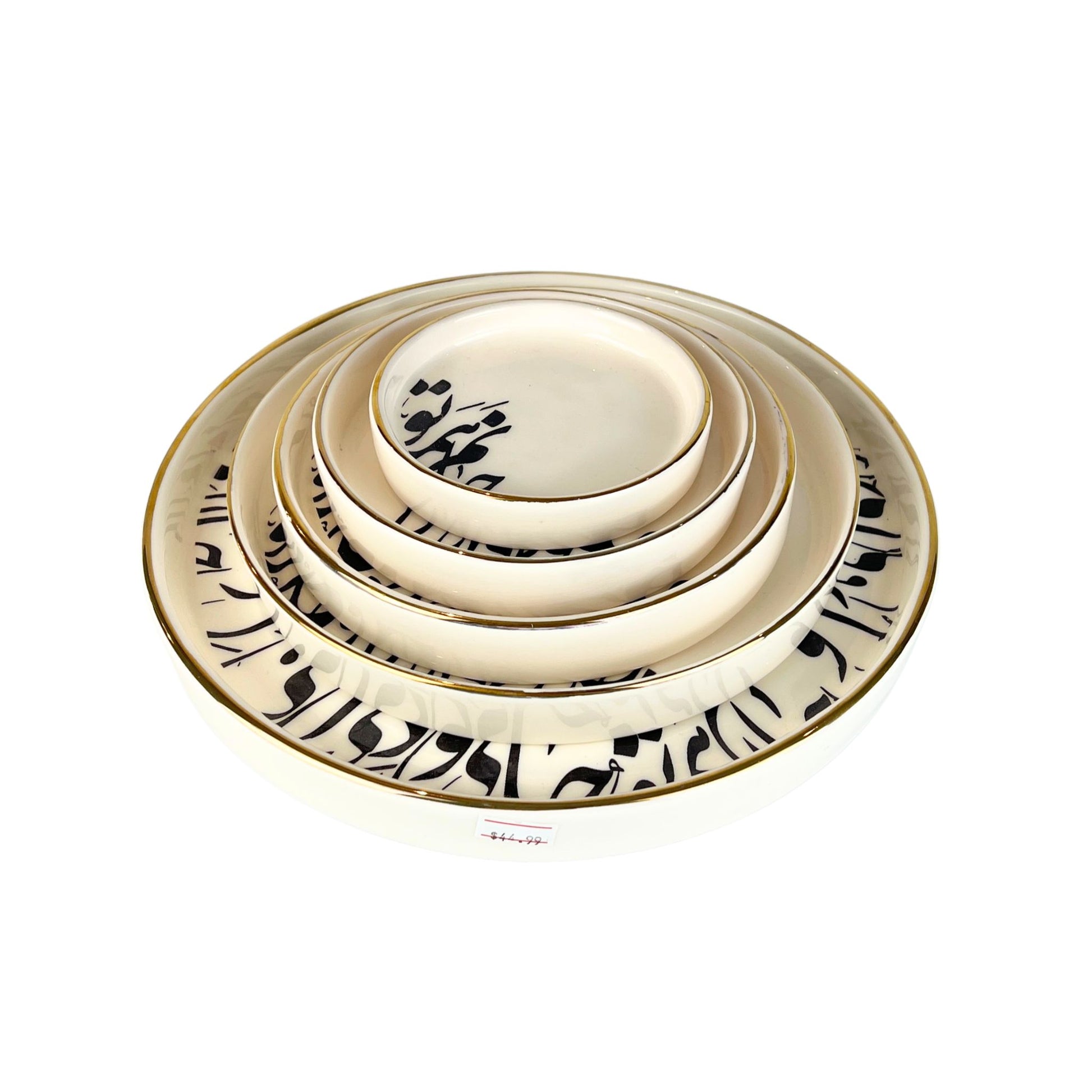 A handcrafted ceramic dish decorated with 11k gold calligraphy, blending Persian artistry with modern elegance. Named Jani o Deli (جانی و دِلی), this elegant design carries both cultural meaning and refined beauty. Perfect for functional use or as a symbolic decorative piece, this dish adds cultural depth and refinement to any table setting.
