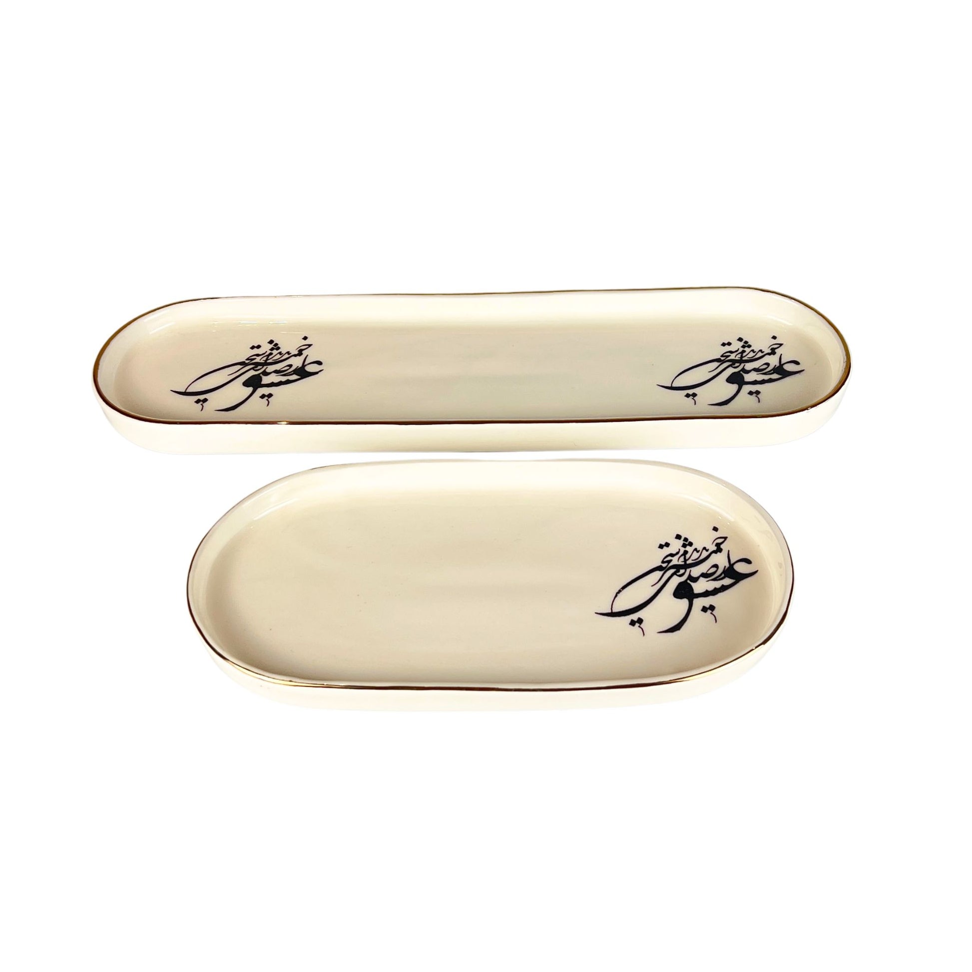 A handcrafted dish decorated with 11k gold, blending timeless craftsmanship with poetic inspiration. Named Sedaye Sokhane Eshgh (صدای سخن عشق), meaning “The Voice of Love’s Words,” this elegant piece carries both cultural meaning and refined beauty. Perfect for serving or as a decorative accent, it’s a true celebration of Persian artistry.