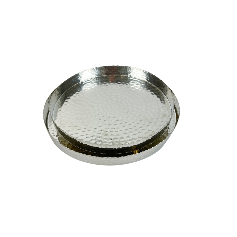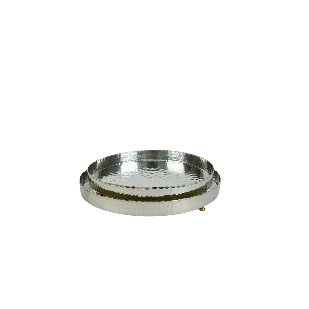 A bold and elegant handcrafted dish that combines the warmth of copper with the sophistication of a brass base. Made using the traditional چکشزنی (hammered metalwork) technique, it is tin-lined and chrome-plated to ensure both durability and beauty. With its large size and timeless two-tone design, the Atlas dish serves as a functional piece for entertaining or a statement decorative centerpiece.