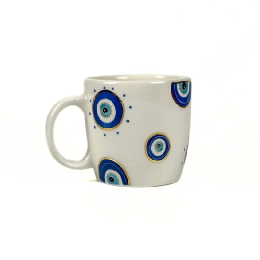 A handcrafted ceramic mug decorated with 11k gold, the Evil Eye Mug combines function with cultural symbolism. Featuring the protective evil eye motif — believed to ward off negativity and bring good fortune — it’s as meaningful as it is elegant. Perfect for enjoying hot or cold beverages, it also makes a thoughtful gift or decorative piece.