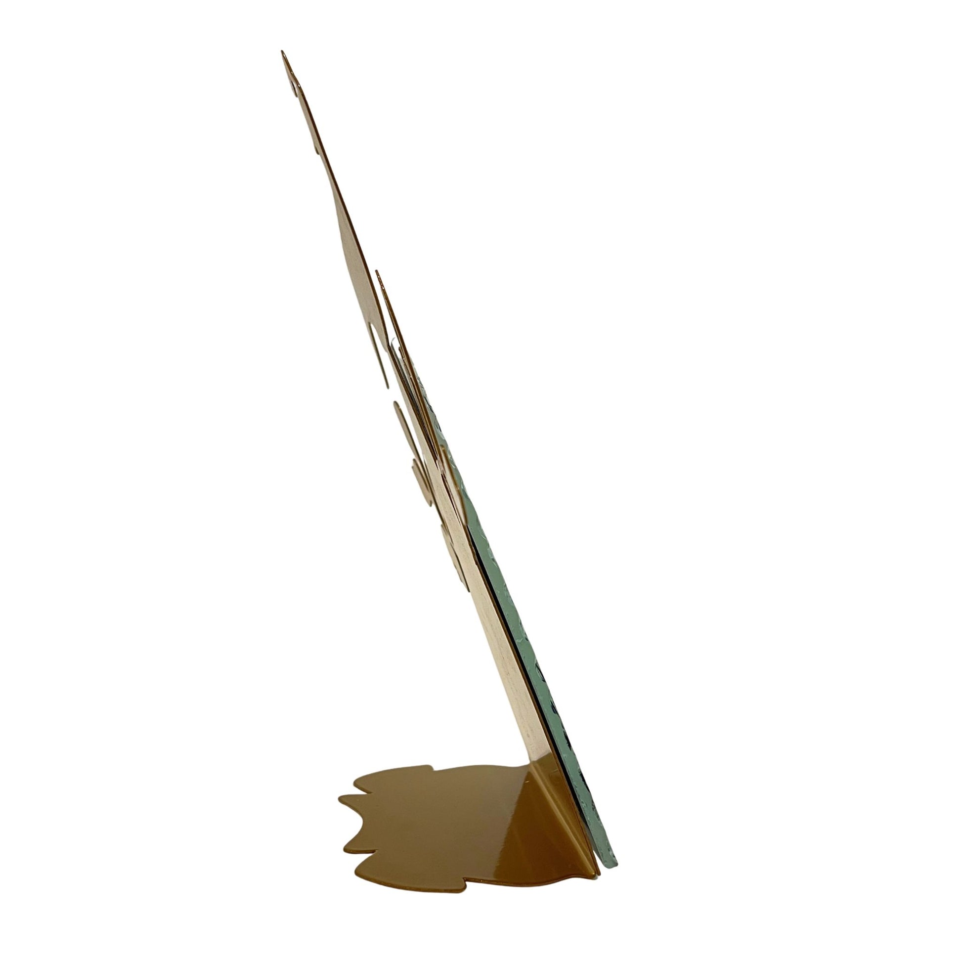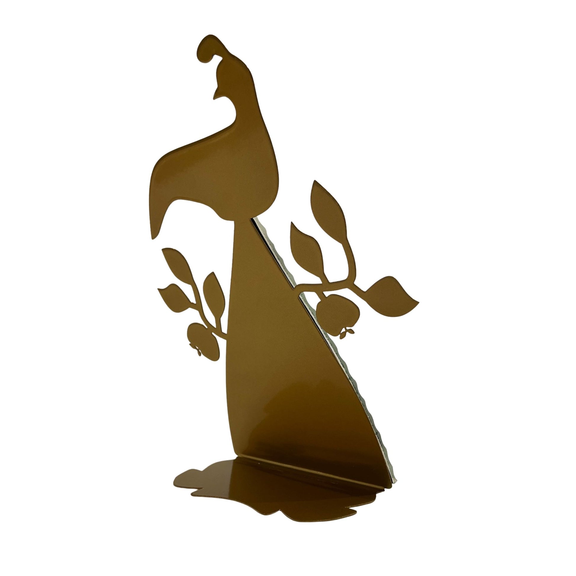 A handcrafted decorative mirror inspired by the graceful presence of the peacock, a symbol of beauty and elegance. Framed electroplated metal, this sculptural piece blends reflective surfaces with refined detailing. Designed to function as both a mirror and an art object, it adds depth, light, and character to shelves, consoles, or vanity spaces.