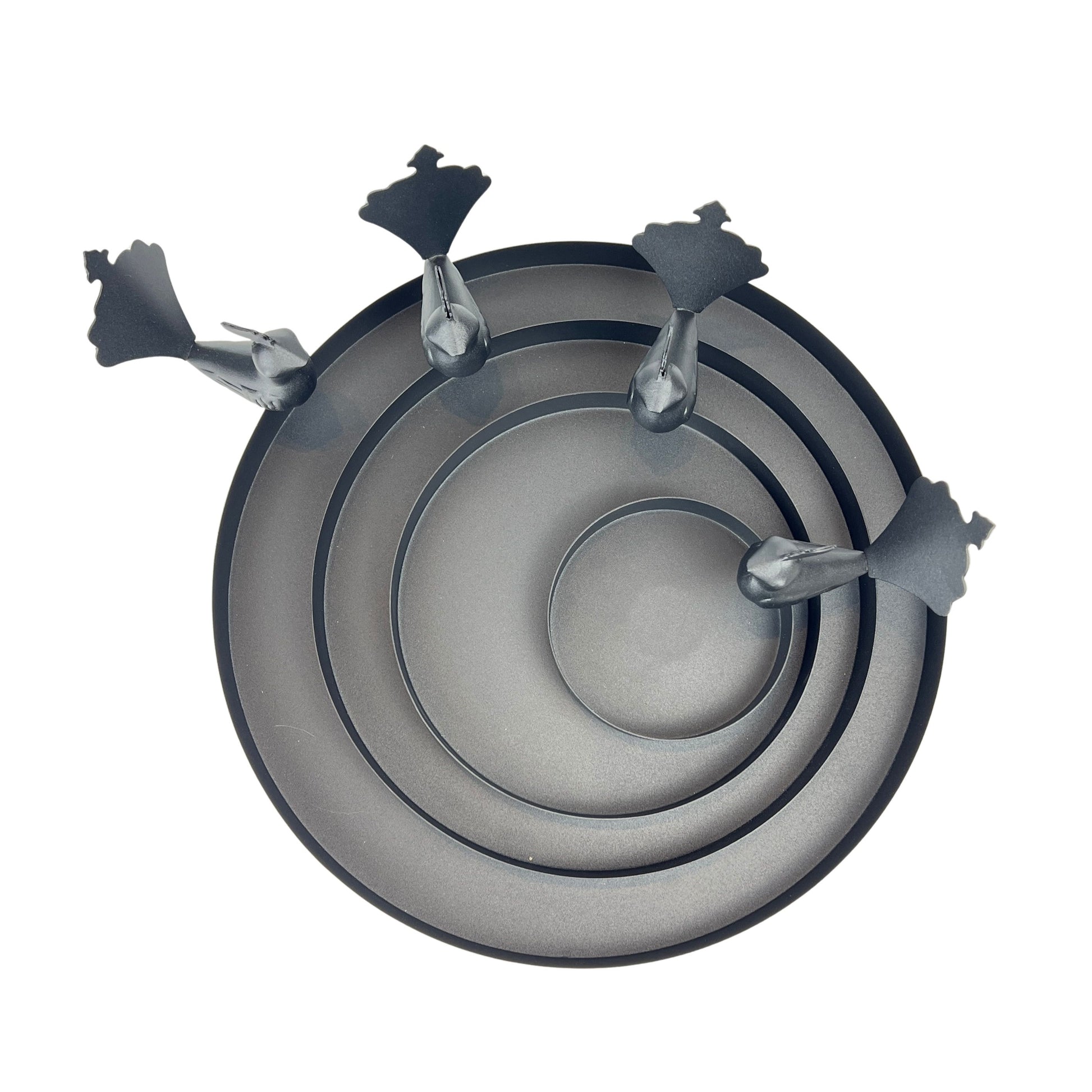 An elegant handcrafted tray inspired by the graceful form of the peacock, symbolizing beauty and refinement. Made of black-tone electroplated metal, each tray balances artistry with function, featuring a sleek finish and sculptural details that elevate it beyond an everyday object. Perfect for serving, styling, or as a decorative accent that adds warmth and character to your space.