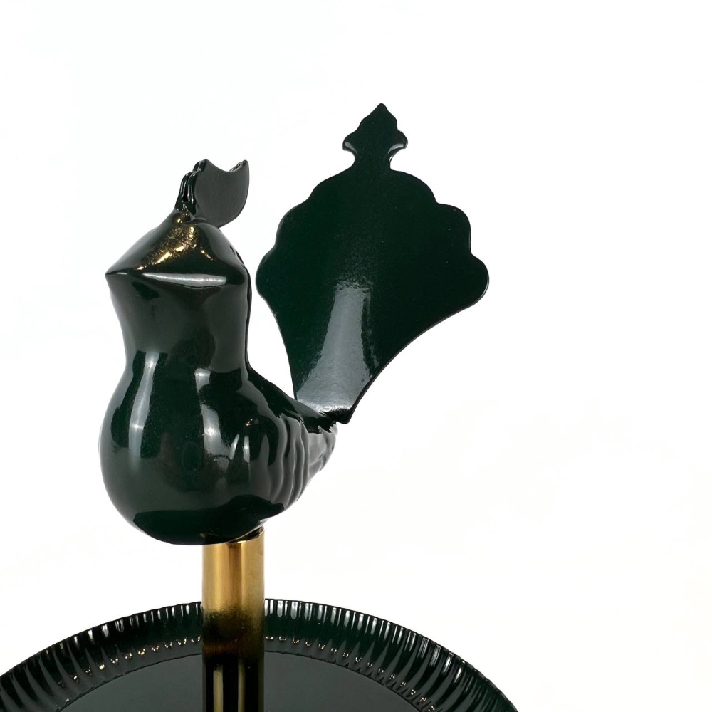 Elevate your hosting game with our Whimsical Avian Serving Trays. Featuring a stylized bird perched gracefully atop a slender gold-tone pillar, these dishes are as much a work of art as they are functional serving ware. The vibrant, high-shine enamel finish catches the light, while the sturdy circular base provides ample space for hors d'oeuvres, trinkets, or seasonal decor.
