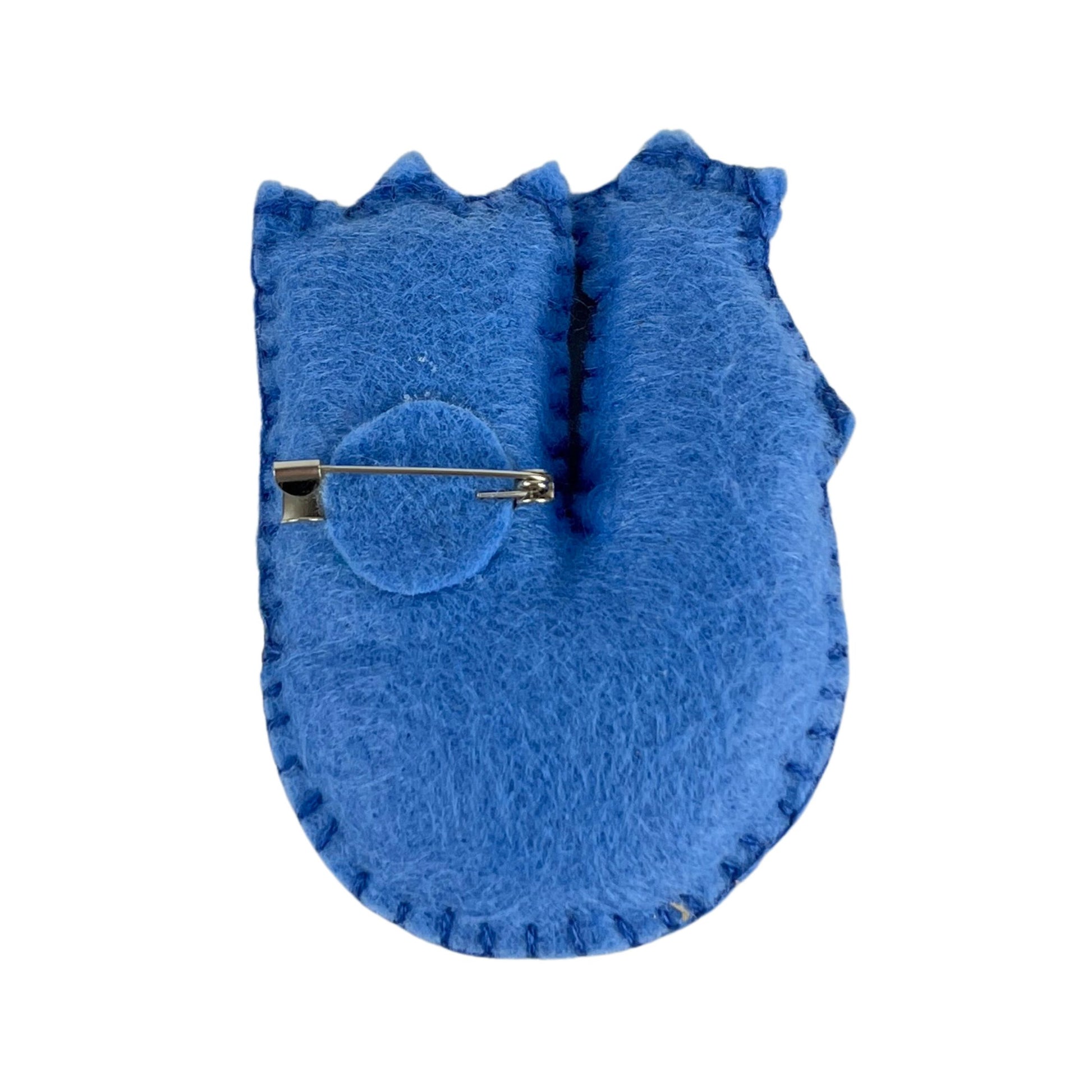 A handcrafted fabric brooch featuring a vibrant embroidered design accented with sequins, beads, and bold color contrasts. Playful yet artistic, this piece adds a joyful touch of craftsmanship and color to any outfit. Available in multiple colors.