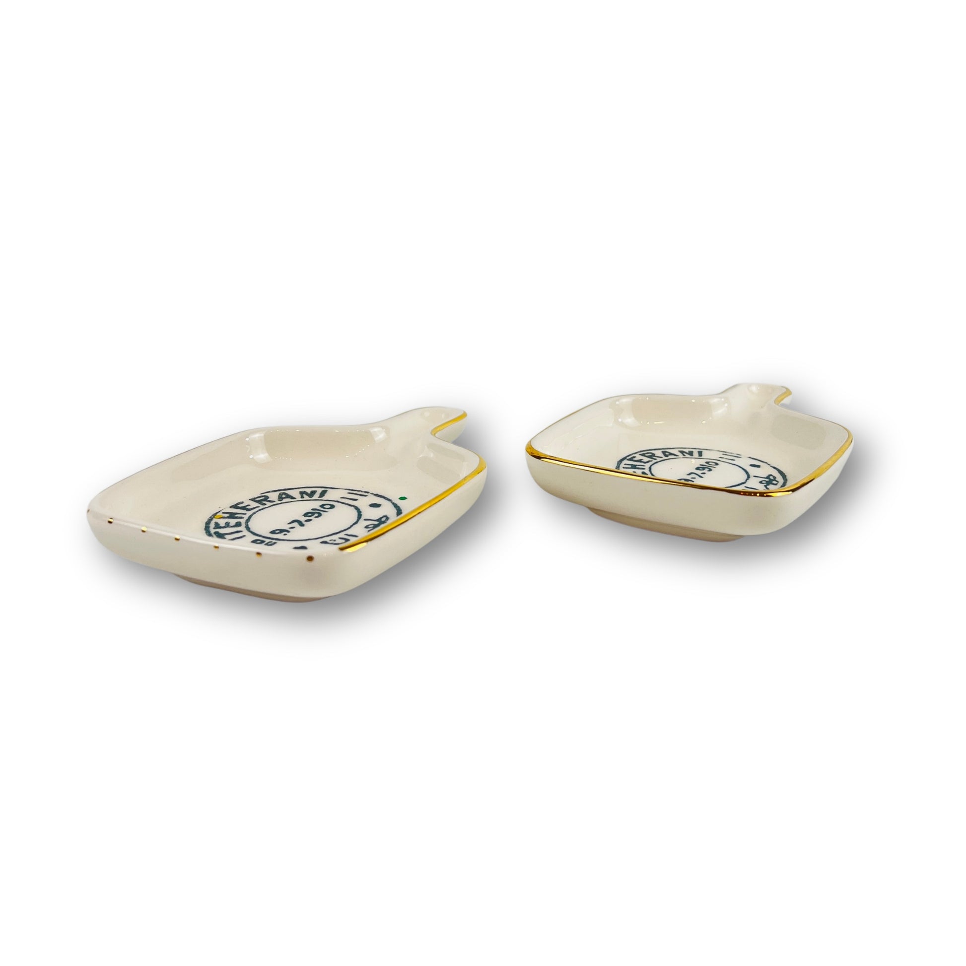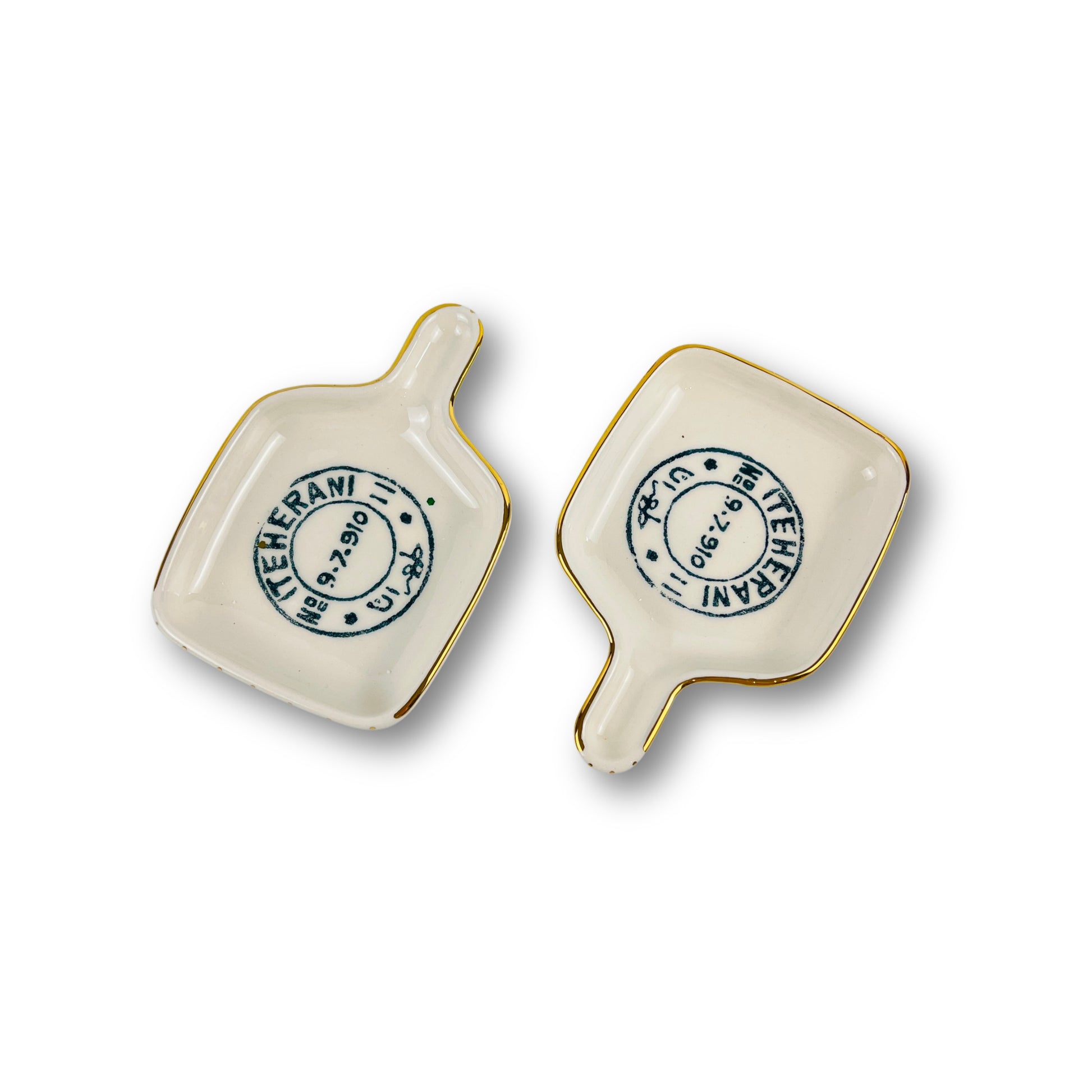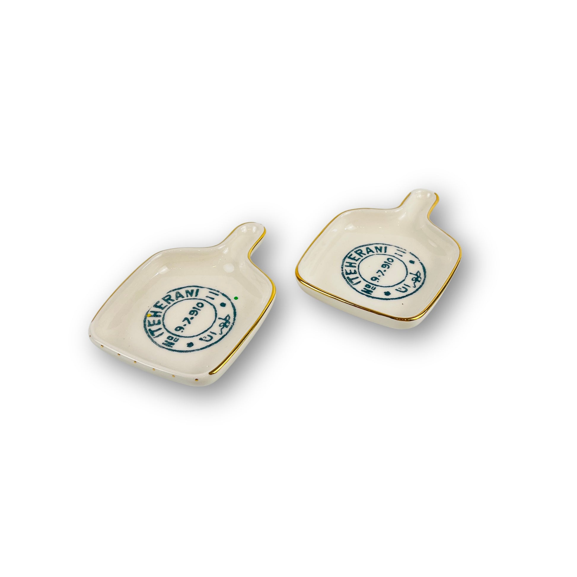 A delicate, handcrafted ceramic saucer that beautifully blends nostalgia and artistry. Featuring a Tehran postal stamp-inspired design, it celebrates the charm of old Iran through a modern lens. Each piece is hand-finished with a fine gold rim, making it both decorative and practical — ideal for serving sweets, nuts, or tea accompaniments, or simply as a piece of cultural art in your home.