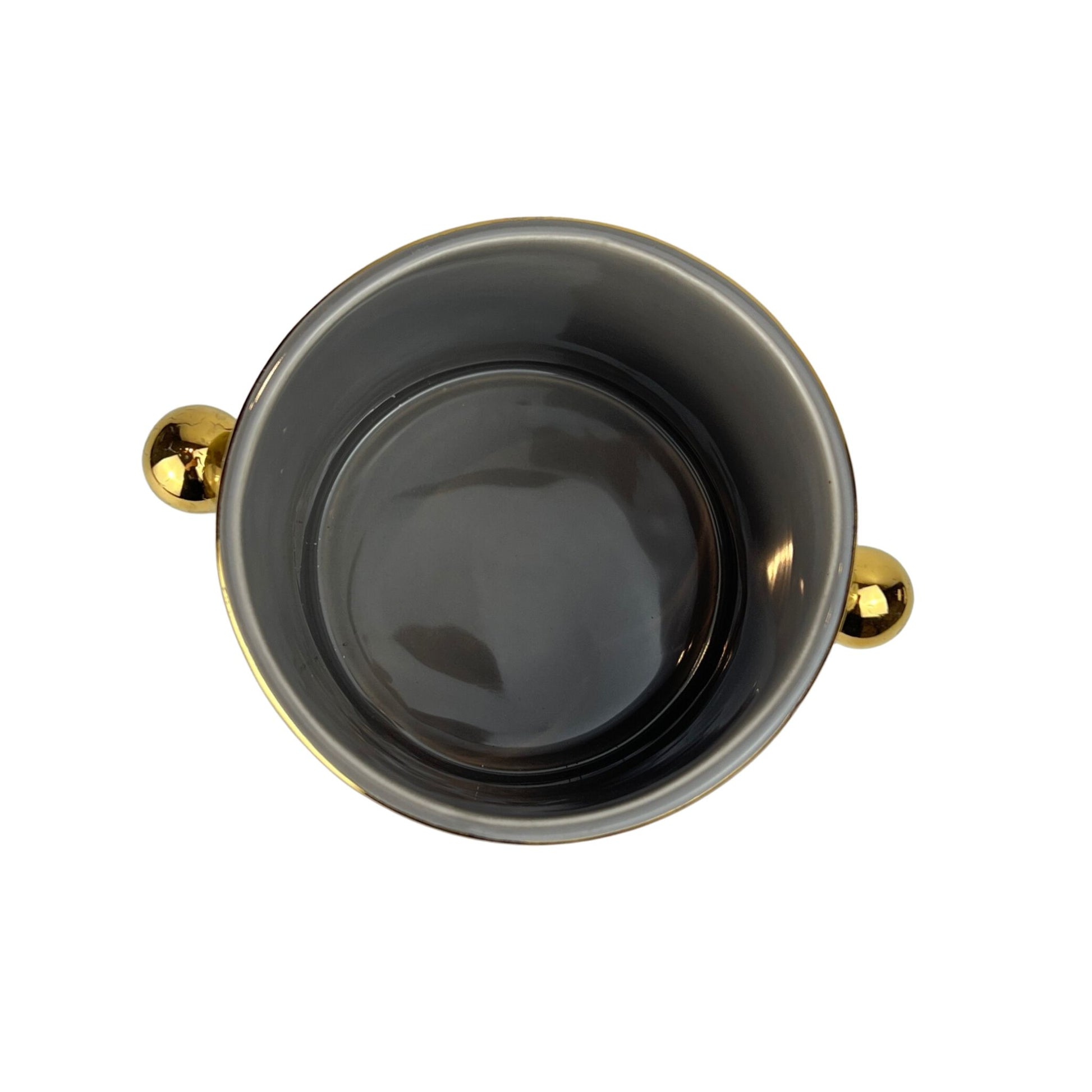 A beautifully handcrafted ceramic vase finished in elegant Simin (silver-inspired) tones and adorned with intricate Persian motif detailing. Accented with polished gold handles, this piece blends subtle luxury with cultural artistry, making it a striking addition to any space. Perfect for displaying fresh florals, dried arrangements, or as a standalone decorative piece.