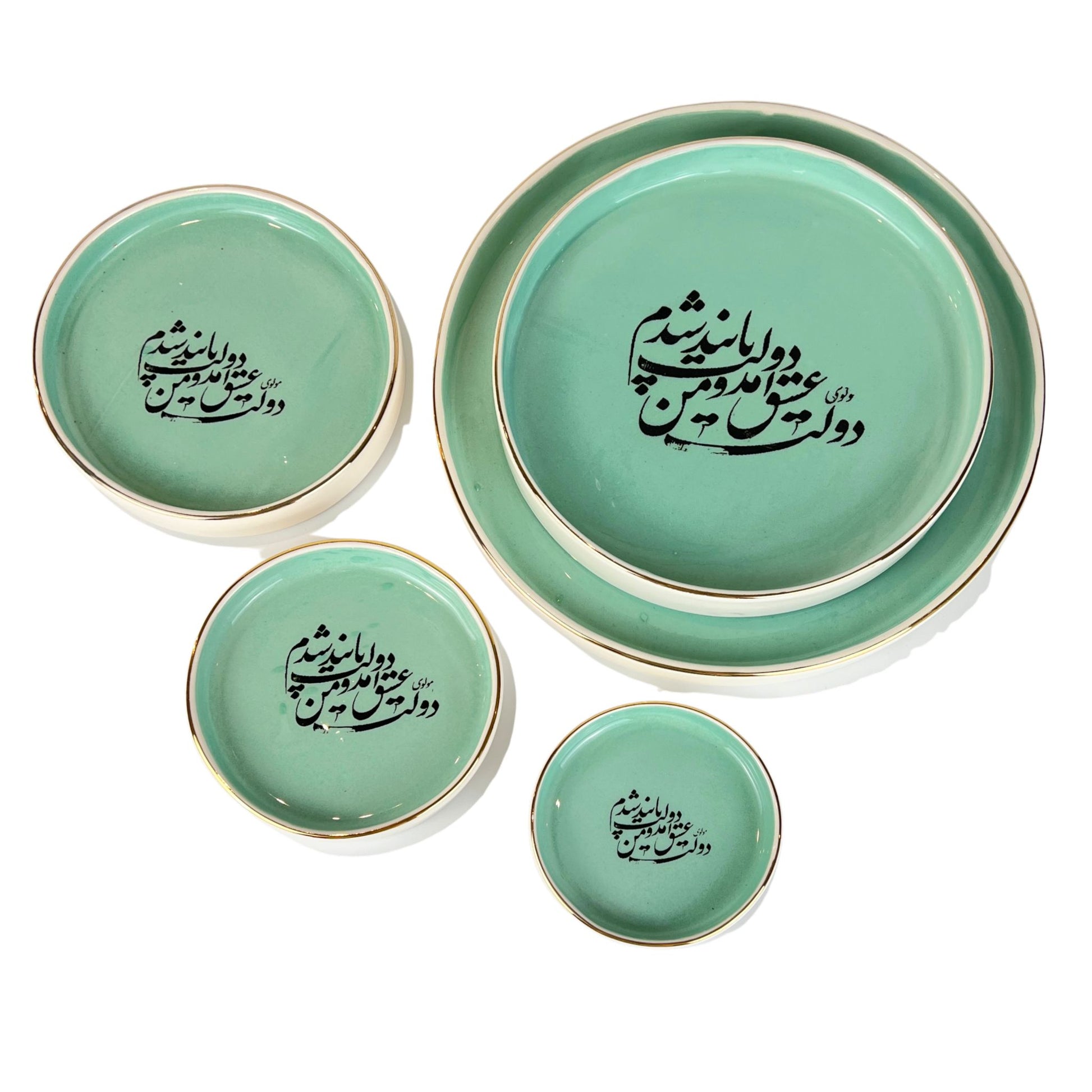 Turquoise Calligraphy Dish Set (Dolat-e-Eshgh)