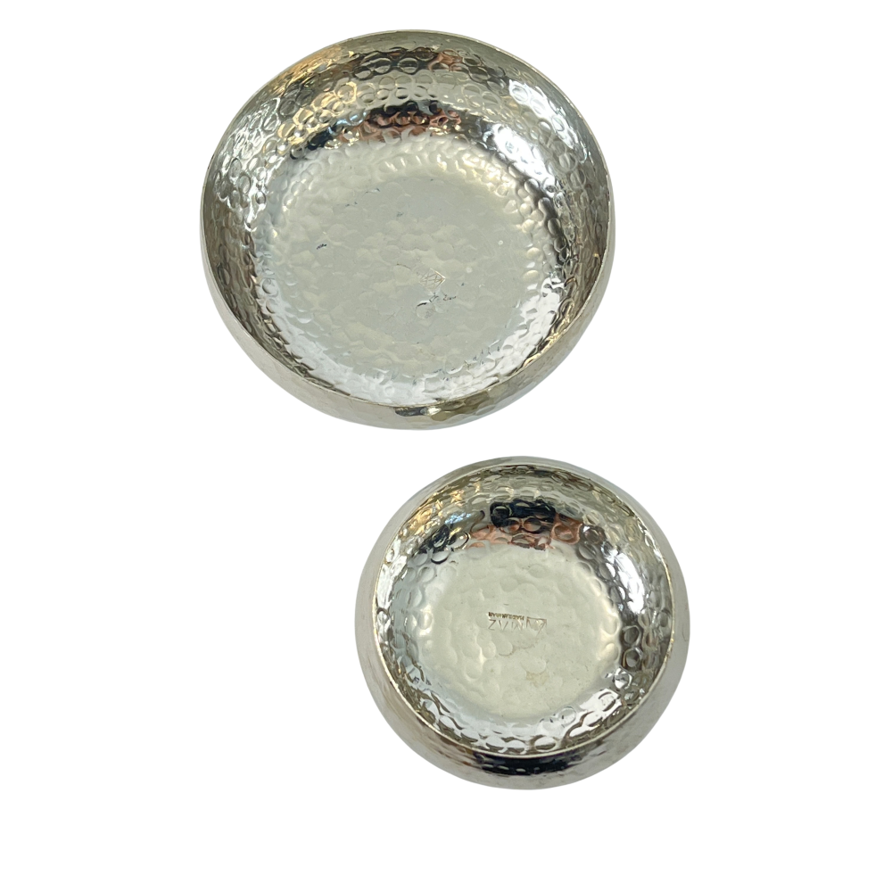 Expertly crafted with a hammered metallic surface, the bowl sits atop a sturdy, tapered pedestal base. Its shallow, wide-rimmed design makes it incredibly versatile—ideal for serving, organizing, or simply acting as a standalone sculptural accent.